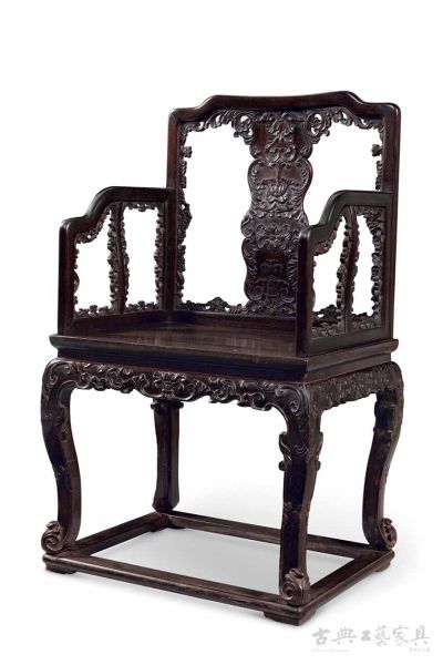 紫檀西番莲纹有束腰带托泥扶手椅 清乾隆