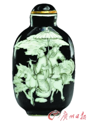 墨彩踏雪寻梅图鼻烟壶。