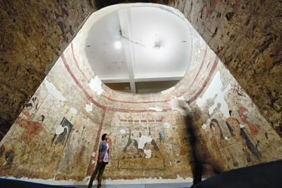 北齐古墓壁画修复完工(图)