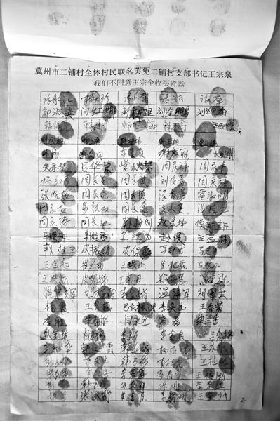 7月11日,冀州市二铺村村民联名抵制村支书王宗泉收买瓷器。