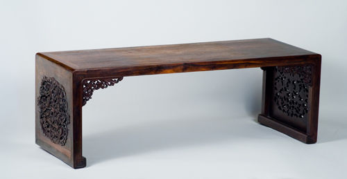 又记,近将檀几图片传寄家青,即蒙见告:乾隆间,清宫圆明园造办处精制紫檀器,凡西洋纹饰,俱由郎世宁出纹样,画家冷枚等督艺。园焚,流散世界各地。今经家青过目并审定确为圆明园紫檀遗珍者,尚不满地支之数。檀几其一也。