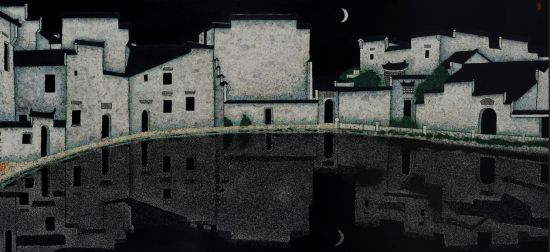 乔十光《徽州民居—宏村月塘》大漆 福建东南2012秋拍 成交价:138万元