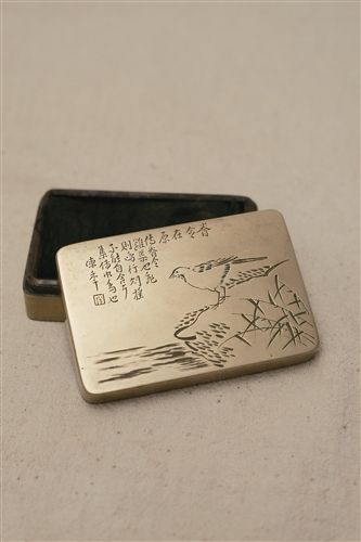 其次瞧工艺。想收藏精品铜墨盒,就得买出于名师之手的作品。名家的雕刻作品以工艺精湛著称,陈寅生、张樾臣、姚茫父都是刻铜大师,他们的作品价值相对一般作品要高得多。此外,使用特殊工艺制作、器形独特、由著名的书画家提供画稿、与历史人物和历史事件有关等因素也能提升刻铜墨盒的收藏价值。