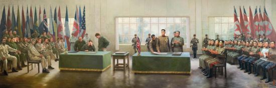 油画作品《正义的力量---板门店》,将让观众回到六十年前硝烟未散的1953年7月27日,共同见证朝鲜半岛最著名的《朝鲜停战协定》时刻,感受中朝两国人民在反侵略战争中以鲜血凝成的战斗友谊,体味朝鲜战争的胜利和喜悦。