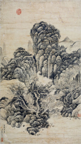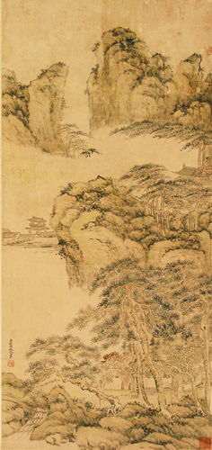钱维城在一生的创作实践中,还注意广学博览,兼收并蓄。他临仿“元四家”(黄公望、吴镇、倪瓒、王蒙),领会他们萧疏、空灵的画风;追摹“清初四王”(王时敏、王鉴、王翚、王原祁),体会他们的构图和笔墨着色,极大地提高了自己的艺术水准,创作出大批佳作。