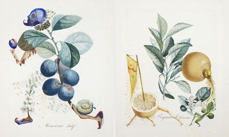 一眼看去,它们像是19世纪的植物版画,如同酒店大堂那无尽的壁纸一般。但是,仔细观瞧,你会发现李子不见了,覆盆子看上去很尴尬,而葡萄柚呢……嗯……足够让观看者看到羞涩了。