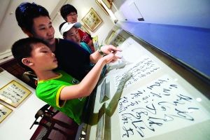 本报讯(记者 刘冕)“来,给我们合张影!”昨日,北京新文化纪念馆的“风展红旗如画——纪念毛泽东诞辰120周年名家书画展”展厅里,老画家李见宇头戴草帽,拄着拐杖,兴奋地与“老友”相聚。这一别再聚,相隔整整一个甲子。