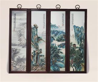 “珠山八友”之一何许人的粉彩四季山水长条瓷板挂屏