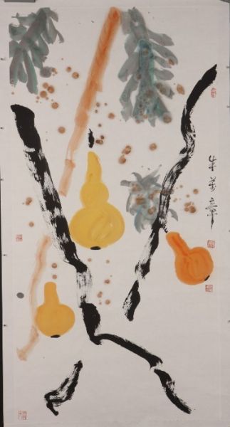 在现今圆熟、职业化的艺术风气中,朱万章“宁拙勿巧”的笔墨显得别有一番文人铁骨铮铮的格调,而明艳的色调又传达出内心积极进取的正能量,轻松随意的笔调表达了为人处世的宽容和随遇而安,端庄默然的葫芦则象征着他安身立命的原则。所以,一葫一世界,自从与书画结缘,他便拥有了他的葫芦,拥有了他的世界,而他的世界将为世人所熟知、景仰。