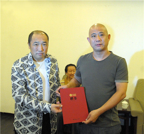 中国国家画院常务副院长卢禹舜代表画院授予方力钧聘书