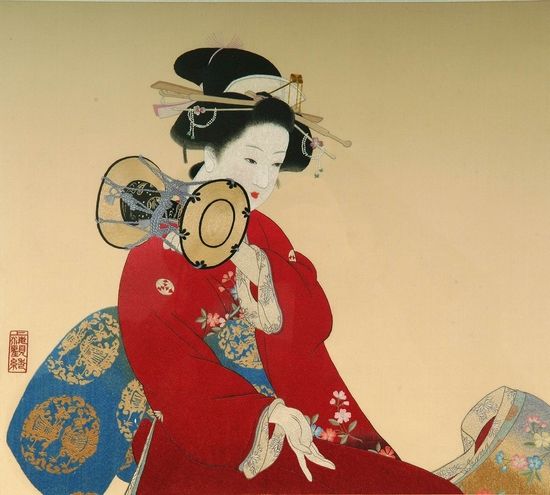 松江博物馆藏的戴明教顾绣作品《日本仕女图》(1980年代)