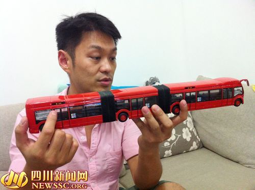 四川新闻网德阳8月23日讯(李鹏飞 记者 周鸿)公交车,作为多数市民出行的常用交通工具,它也是一座城市发展最有力的见证者,成为城市里一道靓丽的风景线。然而,车迷爱车,爱跑车,爱名车,爱越野车,但总有一群人偏爱公交车。从小在四川德阳长大的“80后”网友贺晨骁就酷爱城市里流动的风景——公交车,10余年来他已收藏百余辆公交车、火车、飞机模型,只为了多年来自己心中的那个“公交梦”。近日,记者赶赴山城重庆见到这位“公交控”,如今他已成为了一名城市公交人,正朝着“城市公共交通问题解决者”的目标努力奋斗着。