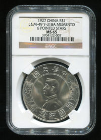 (图为开国纪念币孙像上六角星壹圆NGC MS65)