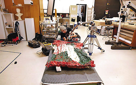 最近,史密森学会的数字化项目办公室就利用3D扫描仪为这个雕塑量身定做了一个塑料泡沫包装箱,使之可以被运送到纽约现代艺术博物馆,在展览“街和店”中展出。3D扫描技术还可用来监测藏品的保存状态。例如,史密森学会将布鲁斯·瑙曼1967年的铸蜡雕塑《从手到嘴》的2009年扫描图像和今年的图像做比对,发现该藏品保存良好。
