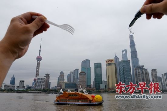 昨天,一场诗歌行为艺术在黄浦江上的一艘渡轮上面持续了整整24小时,这艘被包装成烤鸭外观的渡轮是“渡·爱2013外滩艺术计划”中的一个装置作品。那些无意间被卷入这场行为艺术的普通游客,对此反响不一。