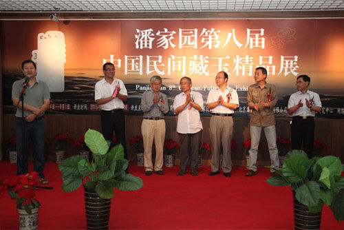 8月24日,潘家园第八届民间藏玉精品展开幕,今年主题主打和田玉。上午10:00,在潘家园展厅举行了开幕仪式。北京玉学玉文化研究中心副主任于明、《百家讲坛》总策划解如光、北京大学地质系教授王时麒、科技出版社文物考古分社社长闫向东、新华社高级记者汪勇基、潘家园国际民间文化发展有限公司董事长崔新未、总经理汤彤等参加了开幕仪式。