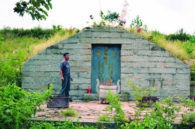 一座宋墓“岳坟”矗立在山腰。墓碑上刻着“大宋剌封,朝奉大夫岳震、陈氏,朝散大夫岳霆、盛氏之墓。”