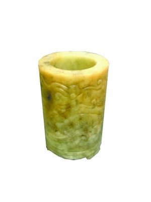 此件作品经北京市文物公司高级顾问、副研究员勾惠贤同志点评,为民国早期青玉笔筒,器形规正,是传世的一件民间制玉作品。从此笔筒上能看出清代碾玉工艺的制作风格。虽然不是清代制玉精品,但是从中也能看出中国古代文人对玉文化的推崇。笔筒为文案之中不可或缺的一种用具,收藏爱好者对笔筒都比较喜爱,在近些年的文物拍卖中,其价格也在不断上升。
