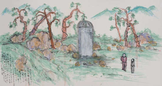 读碑图 纸本设色 141×258cm,2013