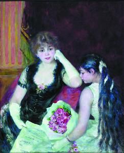 《剧院包厢》 19世纪,到剧院观剧成为巴黎上层社会的一种重要消遣方式。雷诺阿先后创作过几幅以剧院包厢为题材的画作。