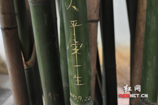 游客刻在岳麓书院竹林内的内容多以留名和“爱情宣言”居多,记者发现最早的刻字落款日期为1998年,最近的刻字落款日期为2013年9月30日,可见游客在这里刻字的陋习至少持续了10余年。