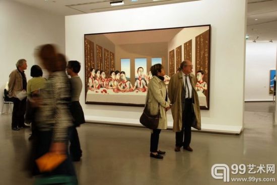 曾梵志(巴黎市立当代美术馆)大型回顾展现场 图中作品为刚刚在香港拍的1.8亿港元的《最后的晚餐》