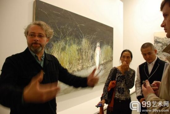 策展人Francois Michaud向观众介绍曾梵志作品