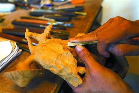 毛关福向来都是坚持创作第一,别人下单子都是来料加工,按图雕塑,毛关福则是参与创作设计,他的海派城市雕塑往往都是自己原创的。