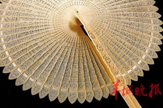 3.十八世纪象牙通雕开光山水亭台花卉圆形折扇