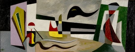 此次“被中断的艺术”大展可谓战后艺术的一个掠影。虽然也有一部分作品创作于1920年代,但大部分的作品都是战后的新近创作。而在所有的参展艺术家中除了一位已故外,其余在当时都健在。立体主义、精确主义(立体主义的变种)、乡土主义、超现实主义,以及魔幻现实主义样样俱全,只是著名的抽象表现主义在当时还没有大行其道。另外,鉴于戴维森当时挑选艺术家时关注了一批正在升起的新星,现在我们不免有些诧异的发现,他们中已经有多少或多或少地淡出了人们的视线,比如:卡梅隆·布思(Cameron Booth)、莱蒙德·布雷宁(Raymond Breinin)、朱利奥·德·迭戈(Julio de Diego)、弗兰克·克莱恩霍尔兹(Frank Kleinholz)、格里高利·普莱斯托皮诺(Gregorio Prestopino)、索尔·威尔逊(Sol Wilson)、卡尔·泽布(Karl Zerbe)、那鸿·恰巴索夫(Nahum Tschacbasov)等等。