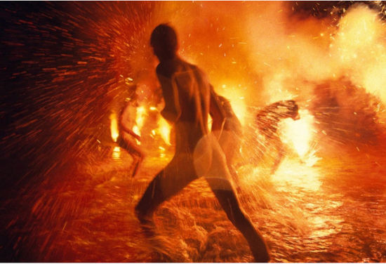 但是展览中有一些作品却被藏起了真正意图,看起来只是为了观看。虽然我们已经看到了丹尼尔·菲尔曼(Daniel Firman)的大象被它的鼻子绊倒后横躺下无数次,作品动态的张力依旧令人印象深刻。它更像是一架喷气式飞机而非一只大象,我们多多少少会期待它像钻头一样旋转起来。在一楼,波拉·彼薇(Paolo Pivi)那张描绘一只斑马被挤在冰冻的土地上的迷人照片,就和一张同样迷人,但却更晦涩的来自赖安·麦金利(Ryan McGinley)的照片搭成一对(后者在贝浩登Rue de Turenne画廊马上有一个展览)。麦金利2013年的照片《湿火花》(“Wet Blaze”)如同烟花般耀眼,但也包含了一种躁动的忧伤:照片拍摄了伊甸园崩塌前的年轻肉体,模糊的形状似乎预示着他接下来的消亡。这种不对称的搭对在展览的第一间房间最为显见。一组法国抽象画家贝纳尔德·弗莱兹(Bernard Frize)的画作(从1982年至2007年)和让·米歇尔·奥托尼耶(Jean-Michel Othoniel)的彩色玻璃雕塑放在了一起。弗莱兹闪耀的油脂状纹理展现出激进的概念程式,而奥托尼耶诱惑性的装饰物依旧保留了强烈的雕塑感、动态和有机的一面,如同DNA链或跳跃的子弹。