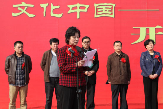 央广网北京10月28日消息 由中国艺术研究院、山东省枣庄市人民政府主办,中国艺术研究院展览演出中心、枣庄市文广新局承办的“文化中国——百名书画家邀请展”开幕式于26日上午在山东省枣庄市会展中心成功举办。中国艺术研究院原常务副院长刘茜,中国艺术研究院副院长田黎明,山东省文化厅副厅长胡上山,枣庄市人民政府市长张术平,市委常委、宣传部长张宝民,市政府副市长霍媛媛,市政府秘书长朱国伟,中国艺术研究院展演中心主任唐建教授,枣庄市文化广电新闻出版局局长邵磊,中国艺术研究院教授、中国画院学术委员会副主任许俊教授,中国艺术研究院中国画院副院长、国家一级美术师刘万鸣,中国艺术研究院美术研究所书法研究室主任任平教授,中国国家画院专业画家、国家一级美术师王辅民,中国艺术研究院中国画专业画家、国家一级美术师曹建华,山东艺术学院设计学院院长刘玉泉教授等社会各界嘉宾近千人参加了开幕仪式。