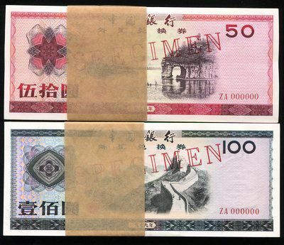 127890026第一版人民币大帆船100元连号二枚120000起拍,127890027一版五万元收割机一枚80000起拍。二版方面127621016二版绿三元九五成新一枚一元起,喜欢捡漏的可以关注了。三版方面有个重量级拍品127373003三版背绿100一组,背绿单枚易见,百枚确属难得。127373002三版五角平版水印100枚连号,35000起较单枚500的成交价确实有点诱惑力。外汇券方面127373004一九七九年外汇券50、100票样各一百枚连号,最近出现的次数比较多,看来卖家急于出货,最近价格下跌也较快。