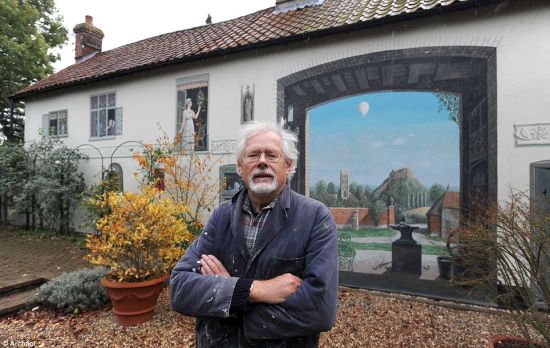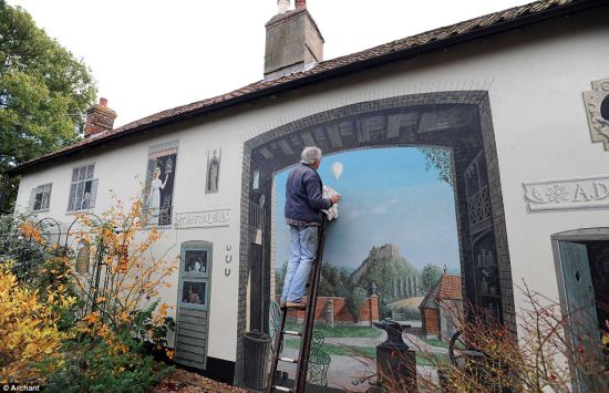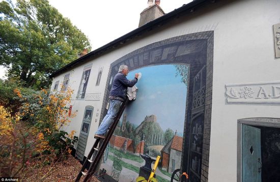 据英国《每日邮报》报道,艺术家Alan Dodd的朋友拜托他在一面50英尺长的白墙上作画,于是,一幅充满视觉错觉的壁画诞生了——窗后亲切的面孔、以及逼真的拱门后那一抹风景,都跃然于萨福克郡的这间小屋之上。