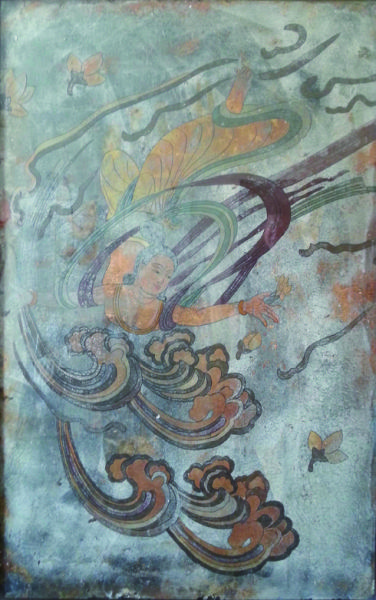 这是一千多年前中国绘画艺术的巅峰之作,是足以令人骇目惊心、目眩神迷的华夏奇珍!它是在什么时间、什么地点被发现揭取,又是在什么时间流入到海外?老店主可能有所忌讳,回答我的疑问时有些吞吐,说了好一会,仅了解了个大概:数年前,在河南洛阳地区的一些人(盗墓者),在当地发现了一座久已盗空的唐代墓葬(也可能是塔基),这组壁画便出自这座墓葬。后来,有人以货运的方法,用集装箱运到日本出售,辗转流离,最后售给福冈这家古美术店。店主说,他很喜欢这些壁画,想自己收藏。应笔者再三请求,店主同意拍照以存资料,我便用手机拍下了这10幅珍贵的壁画。