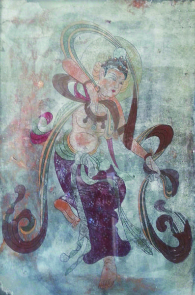 这家古美术店以售卖古旧书画为主,店面狭小,四壁排列着高高的架子,上面堆放着大约几千件欧、亚地区的古旧书画,其中当然以日本画为多。其中中国画也不少,但以近现代、小名头作者作品为主;细看看也有题签标为宋元古画的,当然绝大多数是仿品。店主是位干瘦的老者,看去年逾七旬,通汉语,与中国顾客能做简单的交流。他见我对两轴姚华(茫父)用颖拓法画的佛像感兴趣,便在架子上抽出几幅民国时期京派书画家的作品,推荐给我。后来,他又从里屋搬出一组(10幅)壁画,说是唐代的,来自中国,“拜托”我给确认一下。