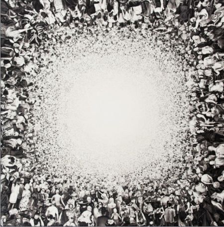我喜欢观察和描绘生活中的人群,这可以让我从另一个角度看待我自己,看待生命。当我俯视人群时我发现每个人都是那么鲜活,那么独特同时他们又那么雷同那么渺小。我对人群充满热爱,恐惧,好奇。我希望我像一个旁观者一样来观察和描绘人群,同时我又无法逃离其中。这是一个被欲望充斥着的疯狂的时代,我渴望用绘画来捕捉这个时代人群的躁动,不安,迷茫,无助,这种令人窒息的震撼有时候是那么的安静,那么的迷人。
