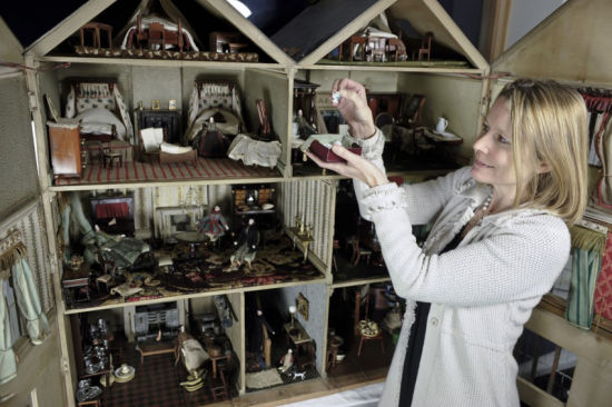 玩具屋内家具一应俱全,精致的玩偶、器皿、瓷器和家具均产自于瑞士和德国;小屋内的结构也相当完整,一楼不仅有门厅,还有厨房和洗衣间。二楼是布置精良的会客室,而卧室则在三楼。报道称,玩具屋虽然经过了几代人的转手,但所有部件都保存完好。(实习编译:朱夷、丁丁 审稿:郭文静)