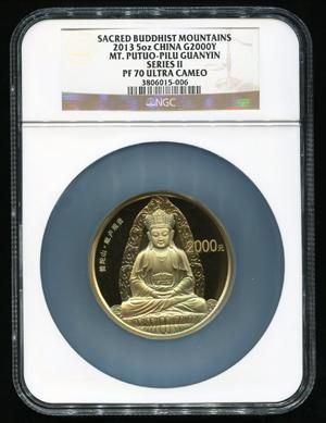 2013年中国佛教圣地普陀山5盎司精制金币一枚(发行量3000枚、原盒、带证书、NGC PF70)