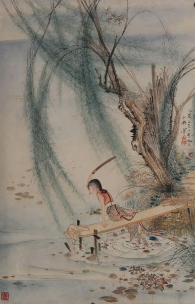 胡也佛《浣衣图》 设色纸本 镜心40×26cm