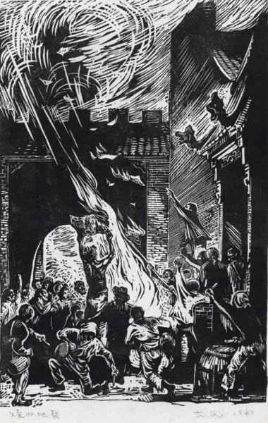 古元 烧旧地契 27.5X18cm 木刻纸本镜心 1947年