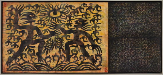 不论是东方神话中的龙、凤、麒麟等神兽,还是西方神话中的独角兽、狮鹫,都是从不同的现实生物中混合臆造出来的,例如中国人最为亲切的民族图腾 “龙”,便集结了九种动物的征貌。它们存在于传说之中,是古人透过多种生命形象的复合“杂交”出来的物种,并被赋予不凡的神力。任戎作品中的形象,或是呈现亦男亦女的雌雄同体特征,或是人身上生长出植物,或是鱼与蝴蝶拥有人的面孔、人如昆虫一般拥有四五只胳膊……这些结合西方现代艺术的自由造型所创造出来的形貌怪异的混种生物,即是一种“杂交”概念的延伸,一种集意志与能量之大成的生命原型,呈现着生命本能张扬与活力。这与中国传统中“生生不息”的生命意识和“天人合一”的自然崇拜都有着密不可分的关系。