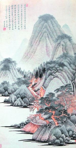 以上三种说法,第一种未详何据,姑且不论。第二种看似没有问题,但细究作为依据的《北固山图》,却大可一疑。《北固山图》今藏广东省博物馆,与今藏上海博物馆的《溪山深秀图》是一对“双胞胎”,画面构图与笔墨的细节都完全相同,而《溪山深秀图》笔墨秀润,神采焕然,并自题“仿北苑笔意”,是典型的王鉴仿董源之作。与之相反,《北固山图》笔墨层次板滞僵硬,笔法琐碎,题字书法亦不类王鉴作风。另可置疑者,引首“弇山堂”印篆法刻板,不合明末印风,“玄照”印篆法乖谬不通,生硬做作,如此种种,基本可以确定此作即是摹仿《溪山深秀图》而成的伪品。那么,这段跋文的可靠性就须重新审视了。而第三种说法,来源似乎是相当明确的,却也不能说毫无瑕疵,因为与已知的史实有些龃龉,比如《穰梨馆过眼录》卷三十七著录的王鉴《仿宋人巨幅轴》题跋中明确说“予己卯岁待罪廉阳”,“己卯”为崇祯十二年(1639),“廉阳”即指广东廉州,这就是说崇祯十二年时王鉴已在廉州,那么何来崇祯十四年方始任职廉州的说法呢?