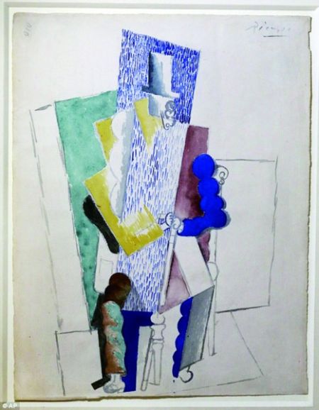 毕加索这幅画作名为“戴折叠式大礼帽的男子”,创作于1914年。
