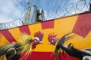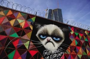2013年5月16日,欧洲中央银行位于德国法兰克福的在建新总部遭遇“艺术”抗议,一些抗议者将6幅涂鸦作品挂在大楼围墙上,讽刺欧洲央行及欧洲政要的一系列经济政策。不过,这个金融机构顺水推舟地利用起这个“事件”,反而进一步允许年轻人在自己的工地围墙上任意发挥创造力,让这个当时饱受争议的建设工程变成了时下欧洲最为时尚的“艺术”旅游景点。(朱春杭)