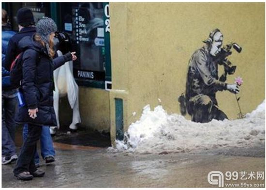 新年前夕,涂鸦艺术家班克斯(Banksy)的两幅壁画被蓄意破坏,壁画位于举办圣丹斯电影节(Sundance Film Festival)的帕克城(Park City),其中一幅已难以修复。