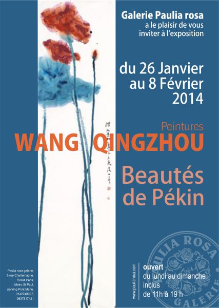 王清州个人画展“BEAUTES DE PEKIN”将于2014年1月26日至2月8日在巴黎Pauliarosa(5 rue CHARLEMAGNE)画廊开幕。王清州是一名生于1974年的中国艺术家,现居住并工作于北京。他的作品包含了水墨、油画、书法、篆刻以及装置艺术等。与生俱来的创造力让他专注于视觉艺术并创造出了自己的风格,一直以来运用在一定规范中自然状态的艺术的风格。避免当代艺术的焦躁、嘻哈和陈词滥调,他是真正的特立独行者。