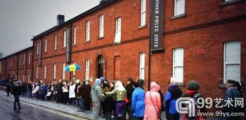 1月5日,约有200人在恶劣天气环境下,聚集到位于德里Ebrington旧军营的特纳奖画廊外面,抗议画廊搬离艺术区转至IT界办公区的做法。