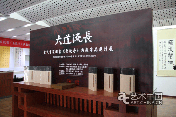 为纪念玄奘西行文化交流成功圣迹1370年,以书法弘扬中华优秀传统文化,2014年5月6日,“大道流长-《大唐三藏圣教序》文化展”在北京海淀区恩济美术馆成功开展,计划展览10天。此次活动由《中国书画》杂志社、载道文化发展(北京)有限公司主办,中国作家出版集团、西安大慈恩寺、北京大德国际拍卖有限公司协办。