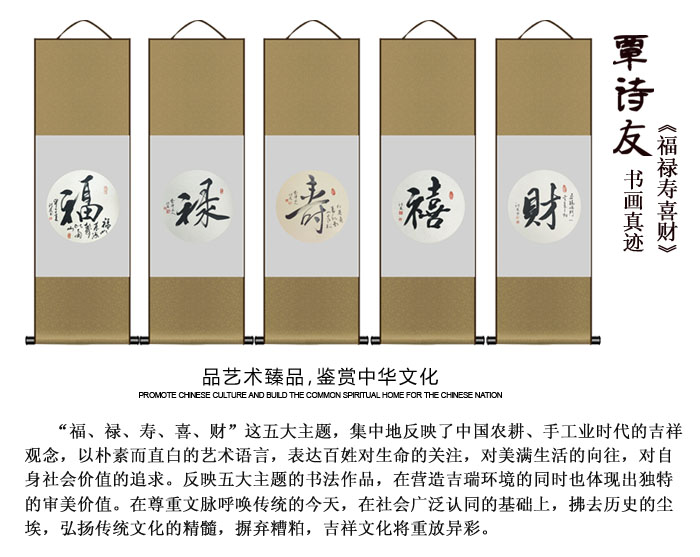 覃诗友作品欣赏之三《福禄寿禧财》润格费3980元|套